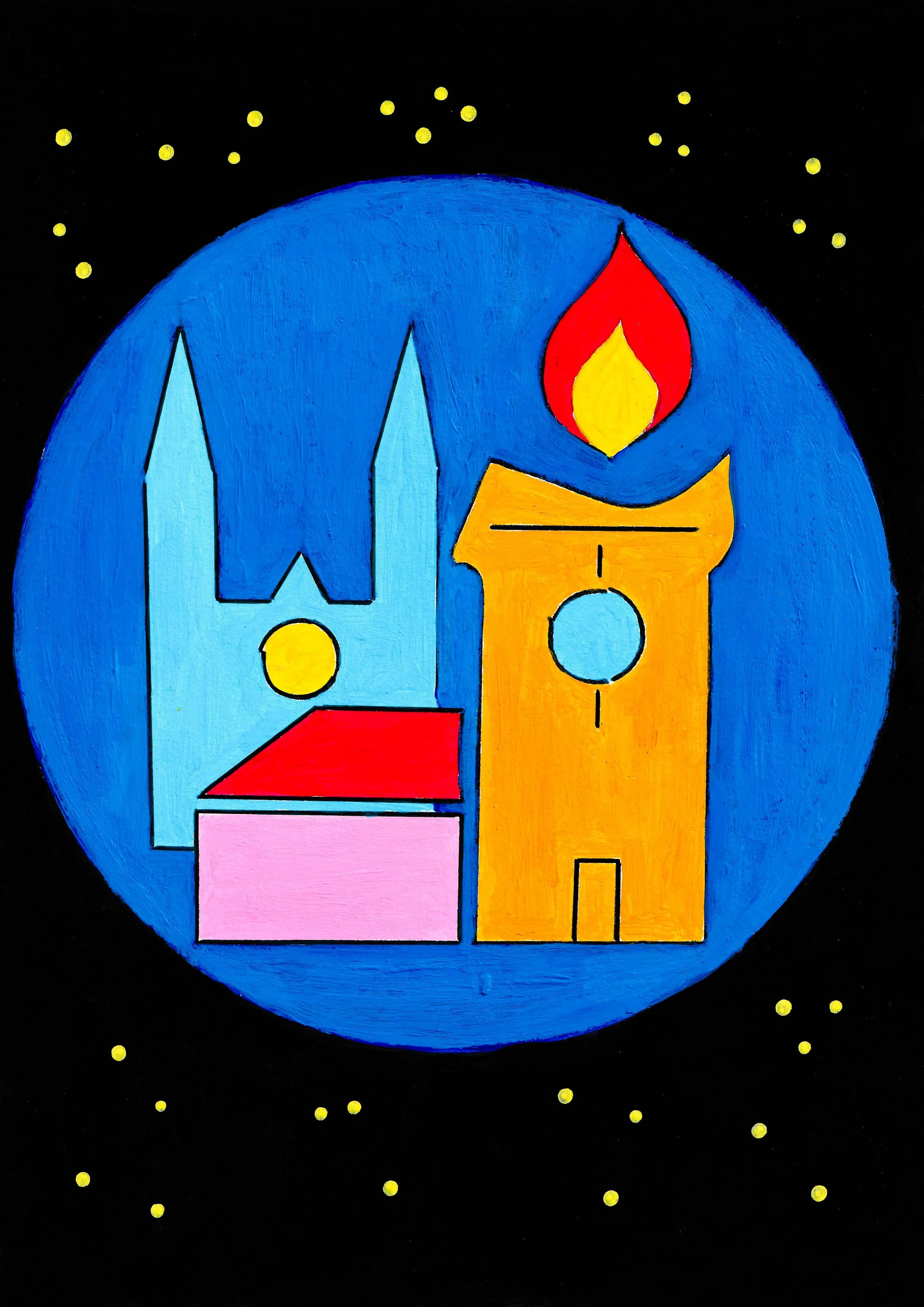 Le projet est présenté à la manière d’un zoom dans la nuit d’été étoilée du quartier historique de Moulins. Le Jacquemart représenté en bougie anniversaire, la brasserie et la cathédrale de Moulins en décor de cette nuit des artistes.